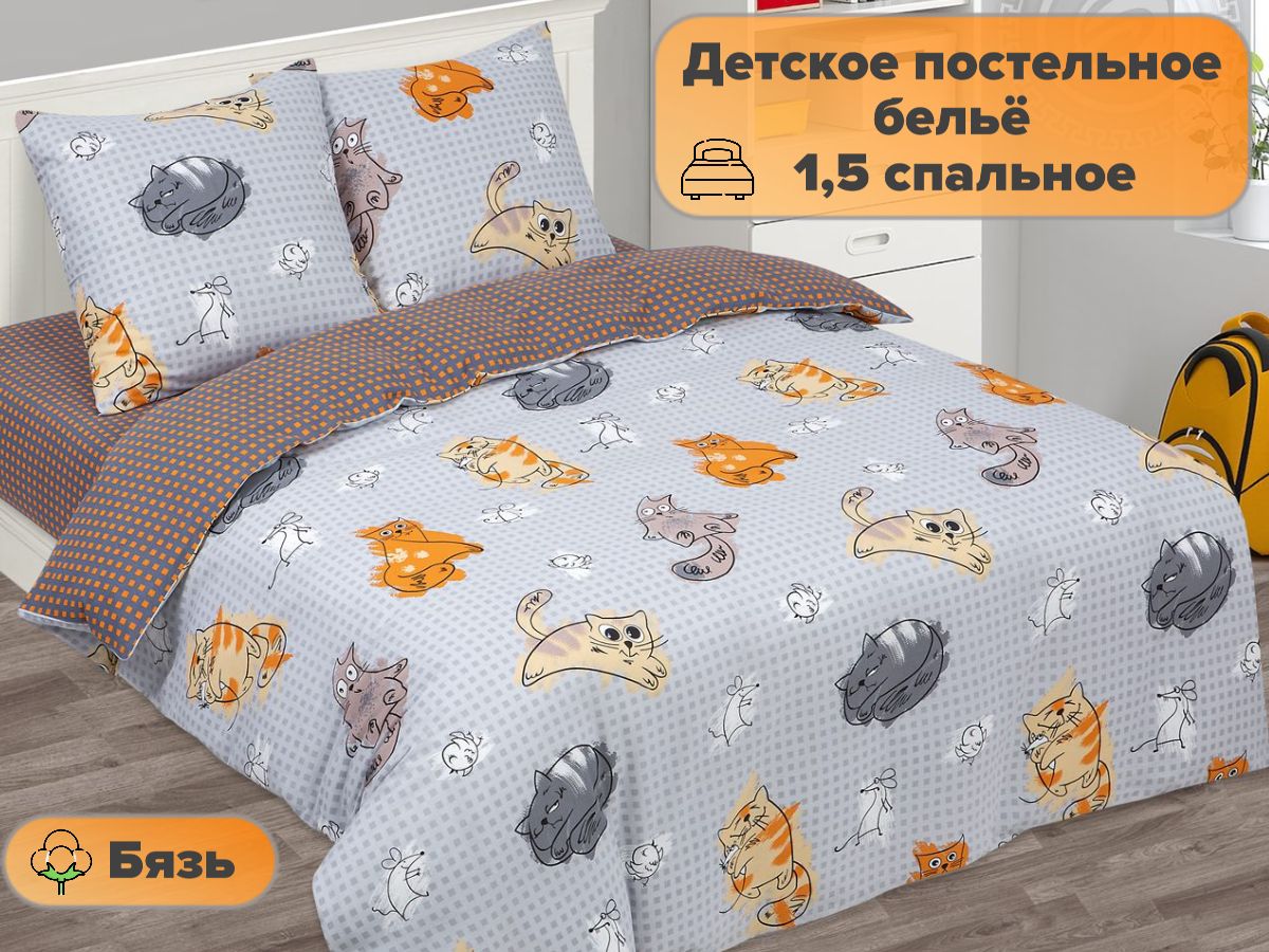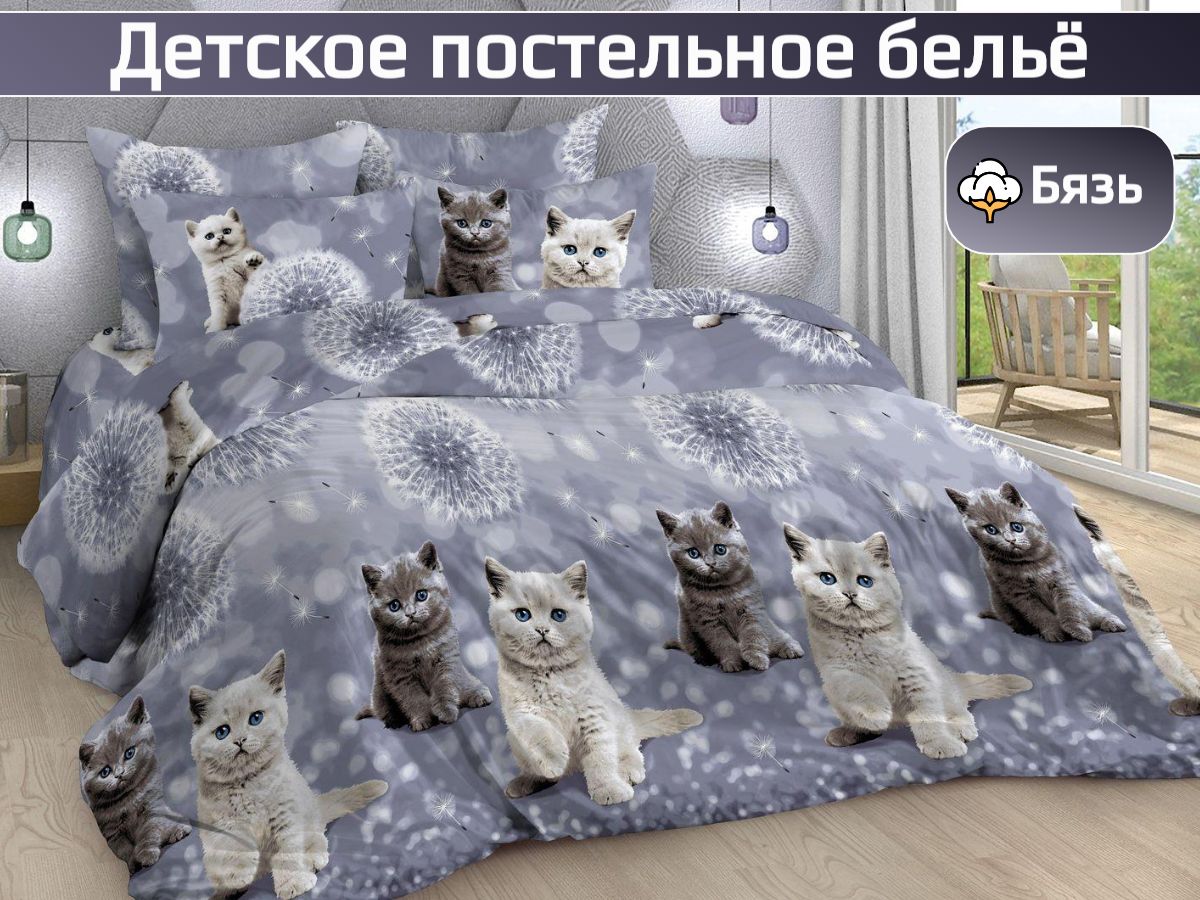 120 / белый / Милашки / Кот, котёнок / 1300 / ивановский текстиль / Полуторный / 143x215 / 1 пододеяльник, 1 простыня, 1 наволочка / 147x215 / Высокая / Унисекс / 4
