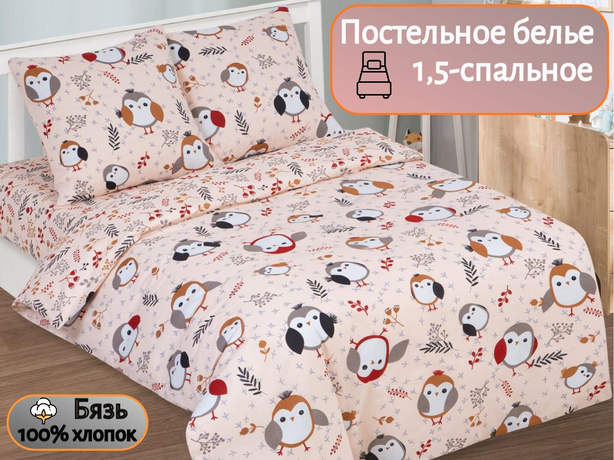120 / бежевый / Пташка / Сова / 1250 / ивановский текстиль / Полуторный / 143x215 / 1 одеяло, 1 простыня, 2 наволочки / 150x220 / Средняя / Унисекс / 4