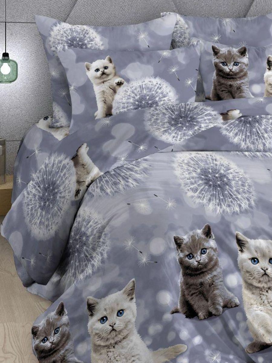 120 / белый / Пушок / Кот, котёнок / 1250 / ивановский текстиль / Полуторный / 147x215 / 1 пододеяльник, 1 простыня, 1 наволочка / 147x215 / Средняя / Унисекс / 4