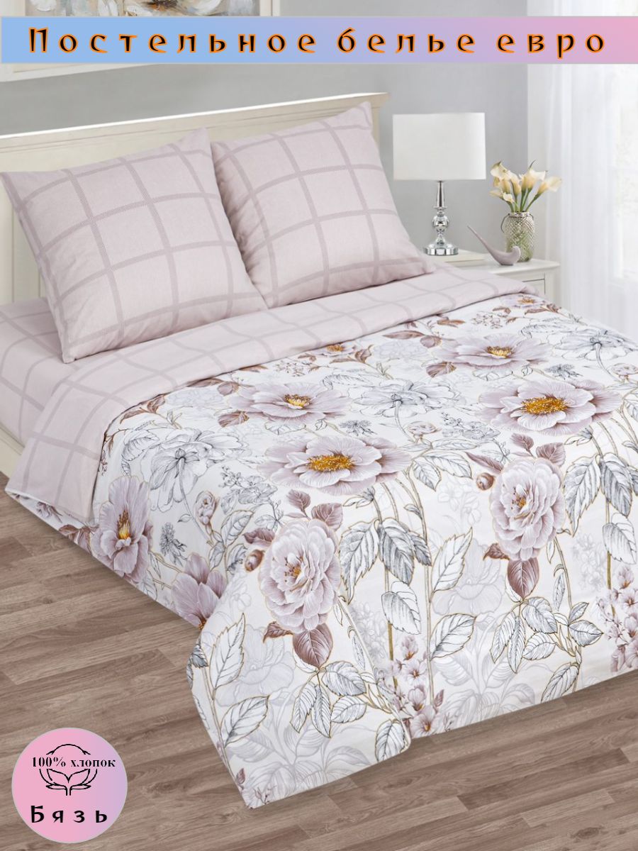 120 / бежевый / Сонет / Цветы / 1700 / ивановский текстиль / Евро / 200x215 / 1 пододеяльник, 1 простыня, 2 наволочки / 220x240 / Средняя / Унисекс / 4