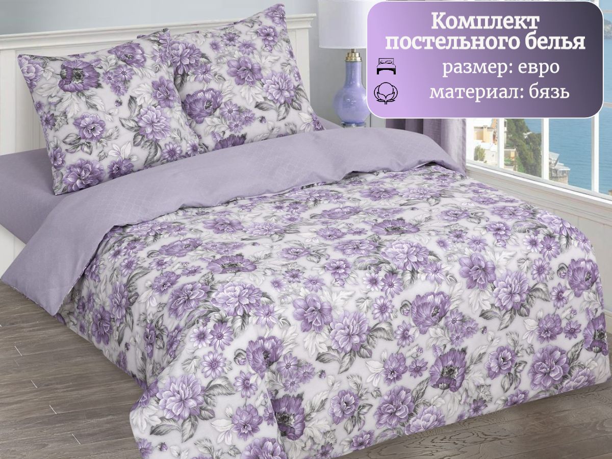 120 / фиолетовый / Азалия / Цветы / 1650 / ивановский текстиль / Евро / 200x215 / 1 пододеяльник, 1 простыня, 2 наволочки / 217x240 / Средняя / Унисекс / 4