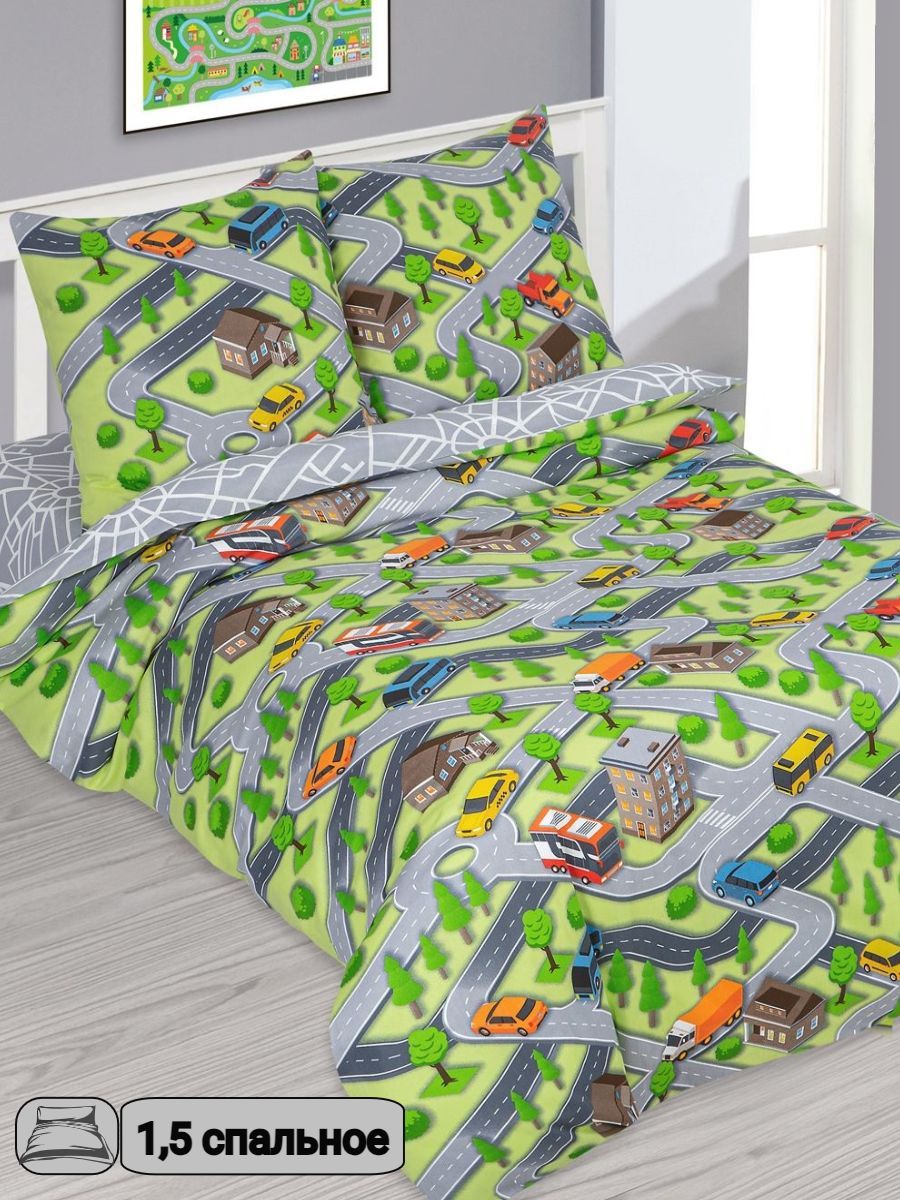 120 / разноцветный / Магистраль / Автомобиль / 1100 / ивановский текстиль / Полуторный / 143x215 / 1 пододеяльник, 1 простыня, 2 наволочки / 150x214 / Высокая / Мальчик / 4