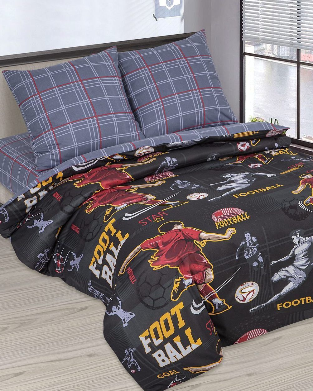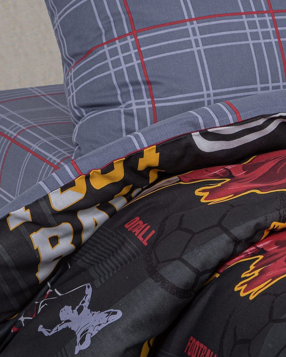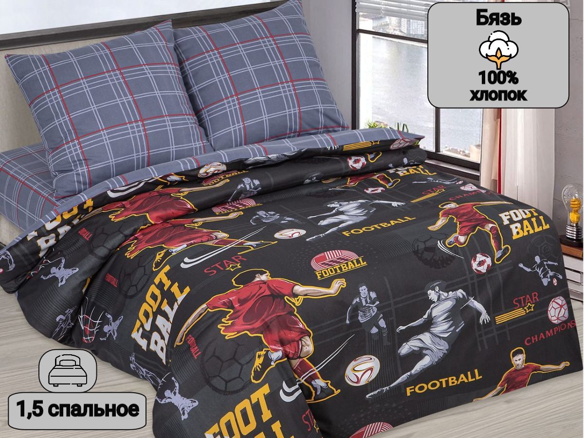 120 / серый / Пенальти / Спорт / 1100 / ивановский текстиль / Полуторный / 143x215 / 1 пододеяльник, 1 простыня, 2 наволочки / 150x214 / Высокая / Мальчик / 4