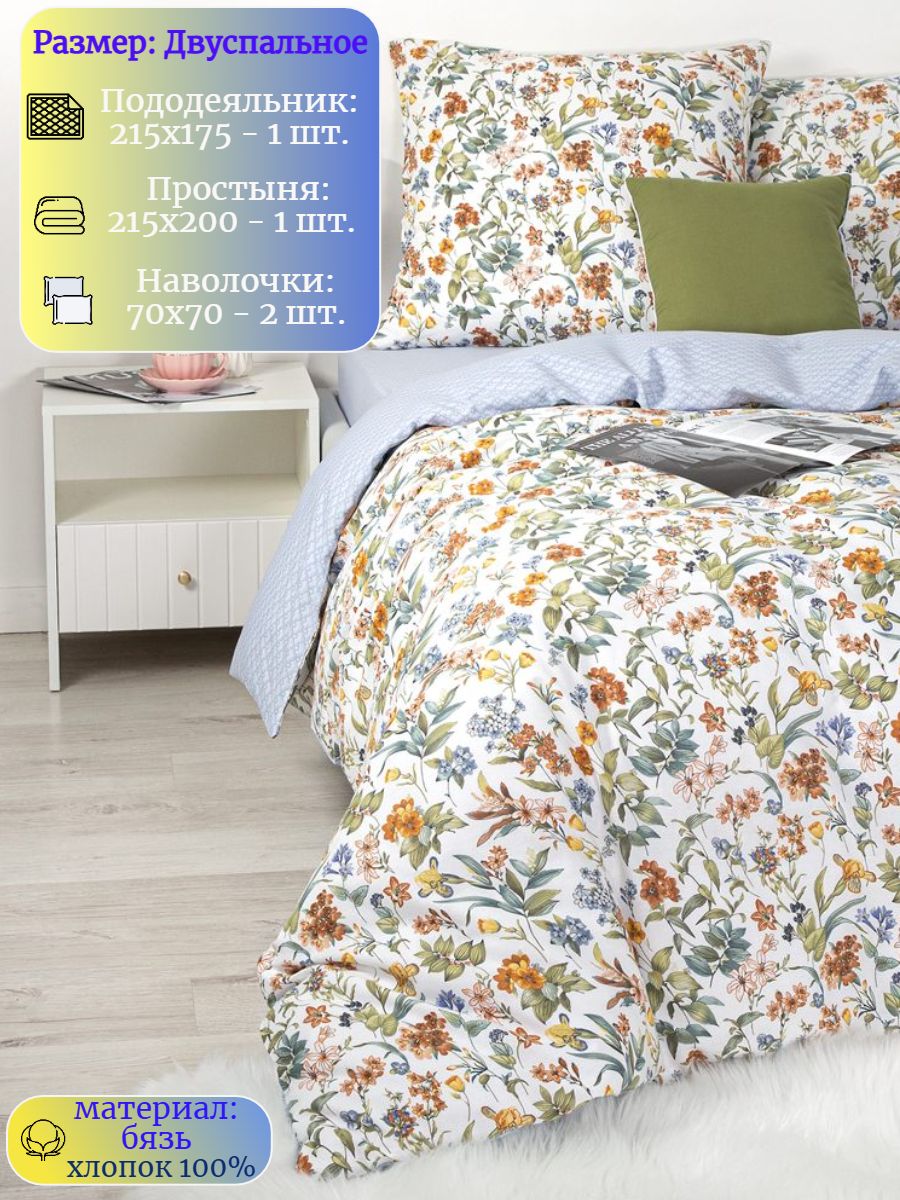 120 / белый / Азалия / Цветы / 1650 / ивановский текстиль / Двуспальный / 175x215 / 1 пододеяльник, 1 простыня, 2 наволочки / 200x215 / Высокая / Унисекс / 4