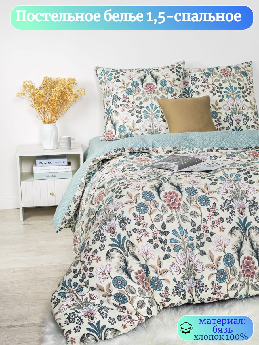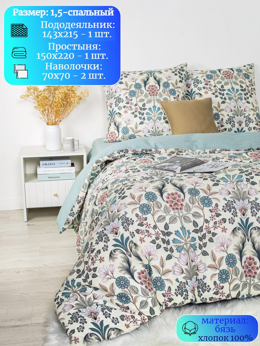 120 / бежевый / Романс / Растения / 1250 / ивановский текстиль / Полуторный / 143x215 / 1 одеяло, 1 простыня, 2 наволочки / 150x220 / Средняя / Унисекс / 4