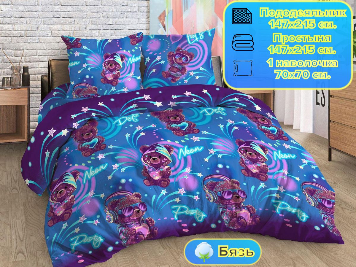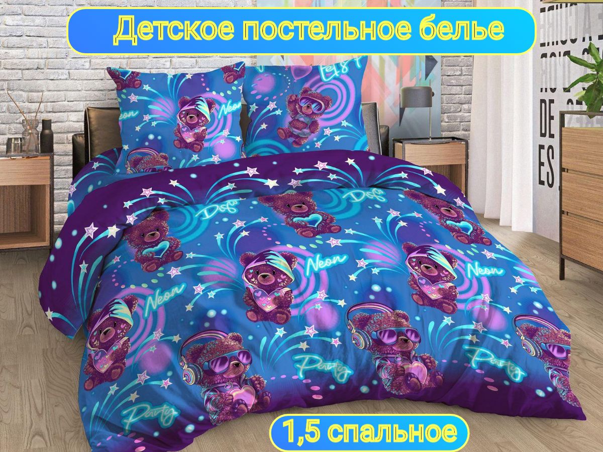 125 / разноцветный / Диско / Медведь / 1250 / ивановский текстиль / Полуторный / 147x215 / 1 пододеяльник, 1 простыня, 1 наволочка / 147x215 / Средняя / Унисекс / 3