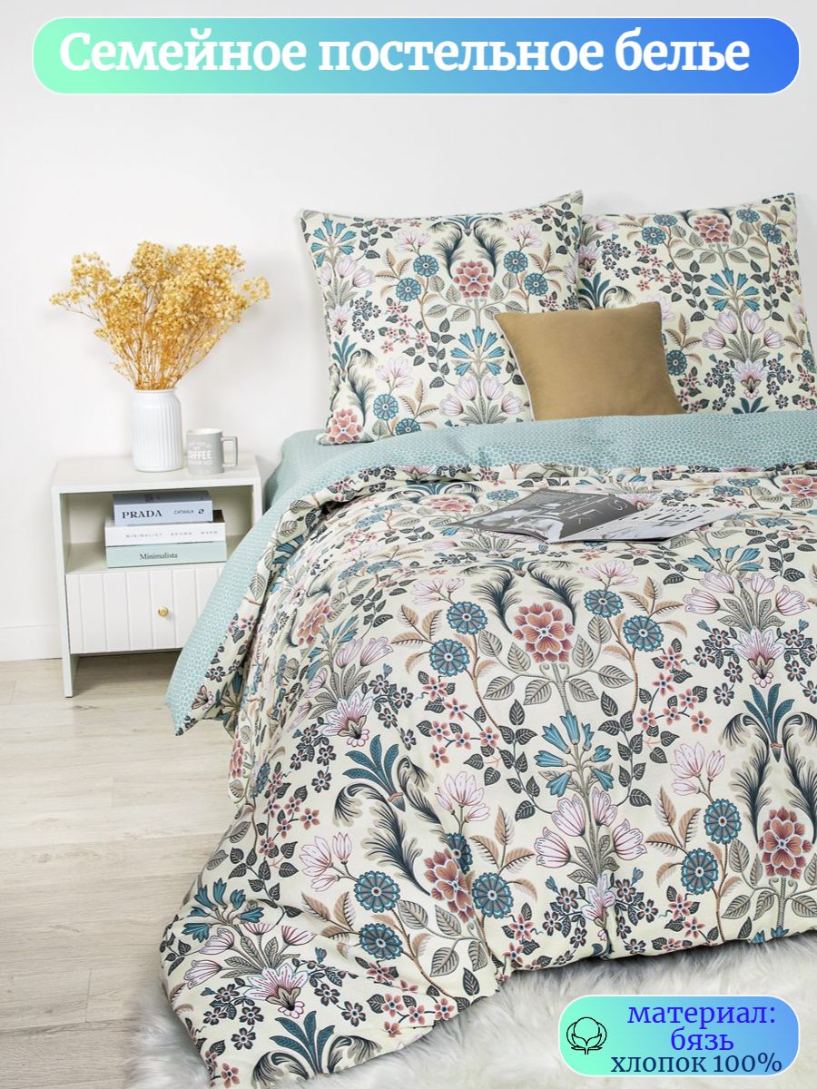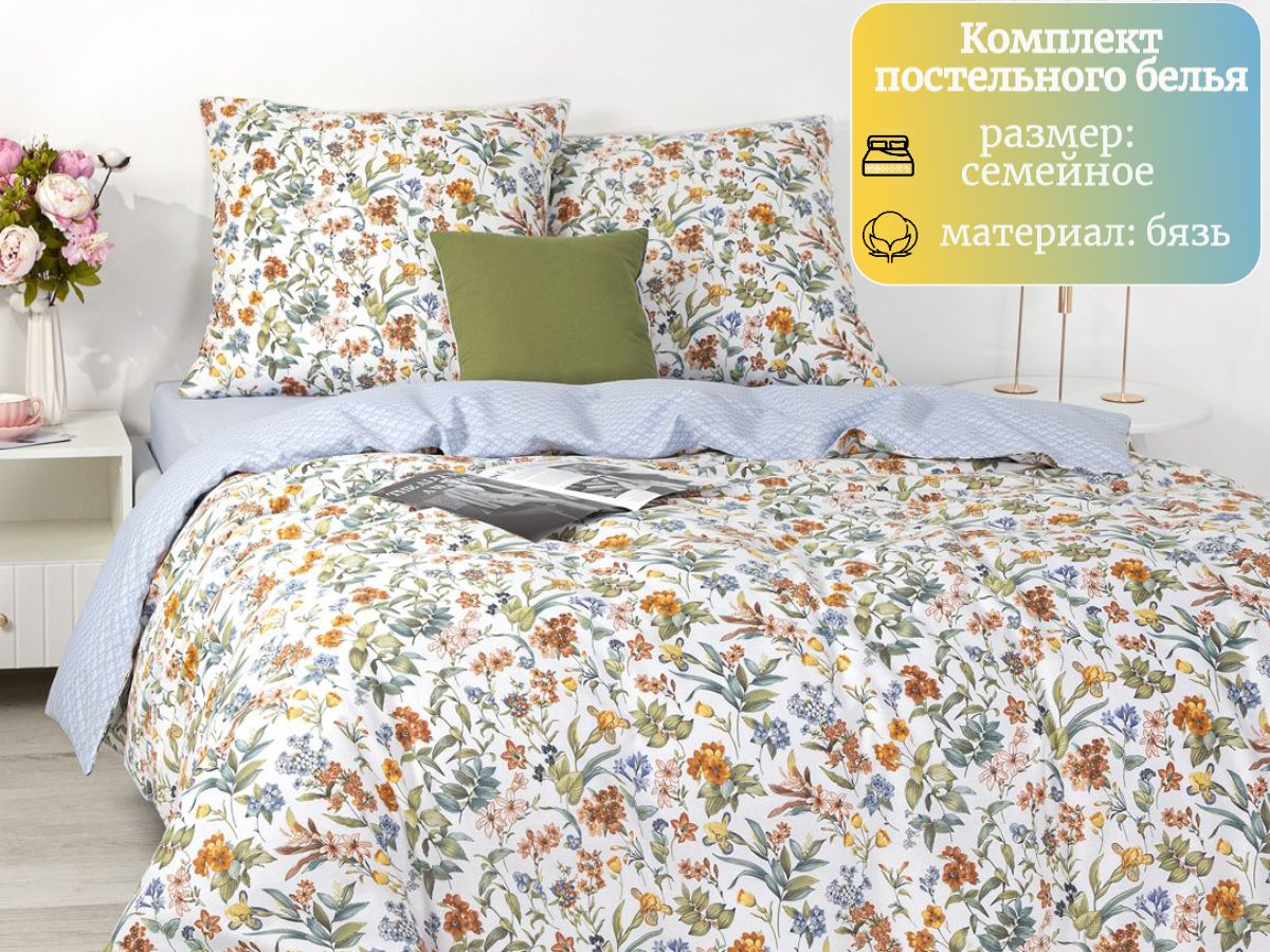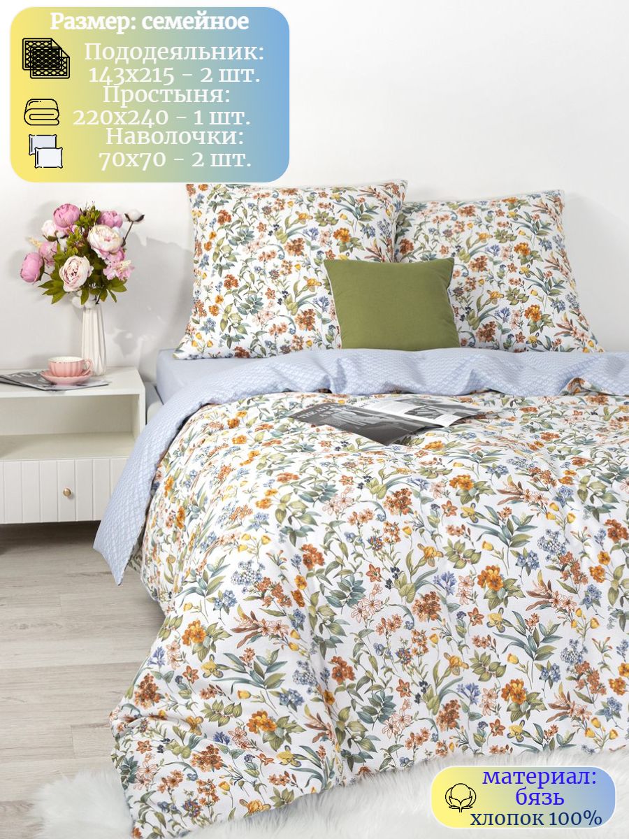 125 / белый / Лорена / Цветы / 1100 / ивановский текстиль / Семейный / 147x215 / 2 пододеяльника, 1 простыня, 2 наволочки / 220x240 / Средняя / Унисекс / 5