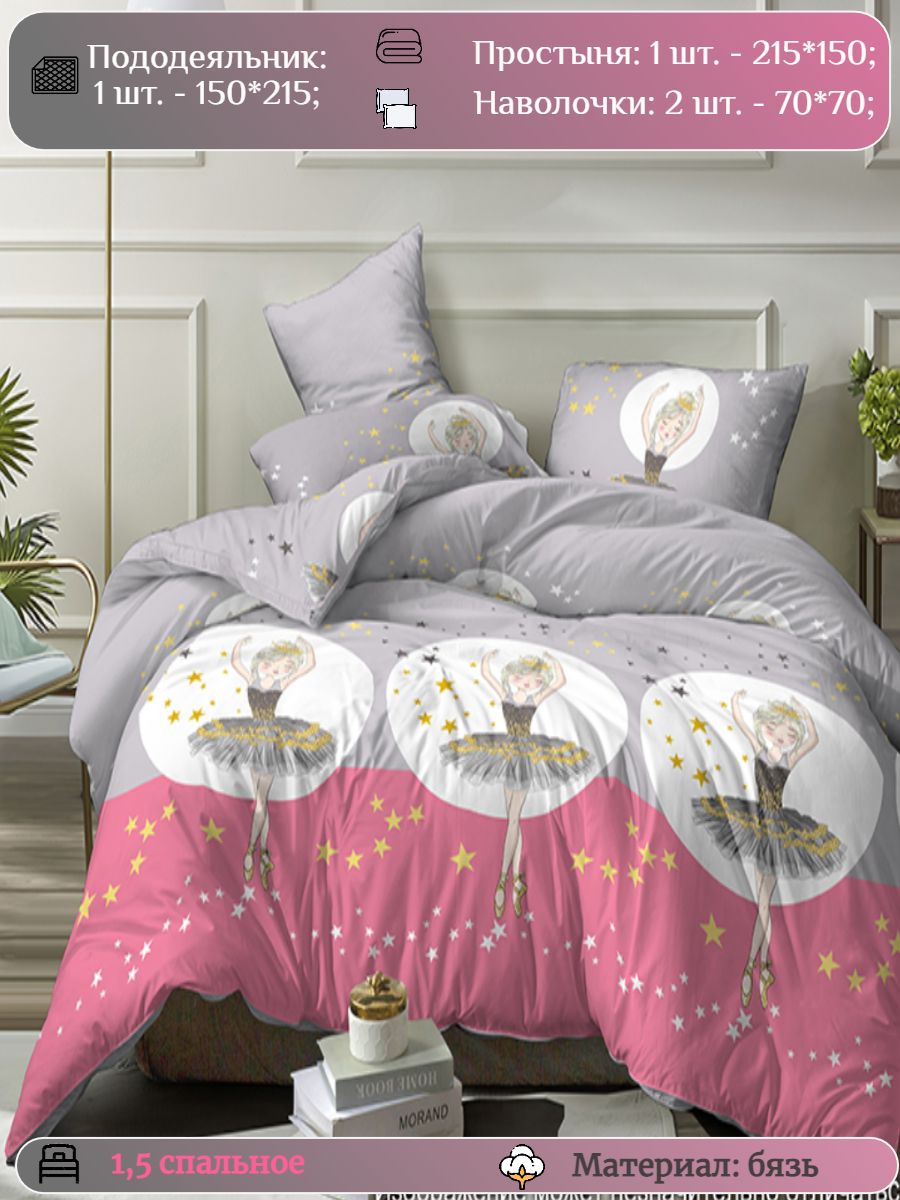 120 / розовый / Балет / Балерина / 1250 / ивановский текстиль / Полуторный / 150x215 / 1 пододеяльник, 1 простыня, 2 наволочки / 150x215 / Высокая / Девочка / 4