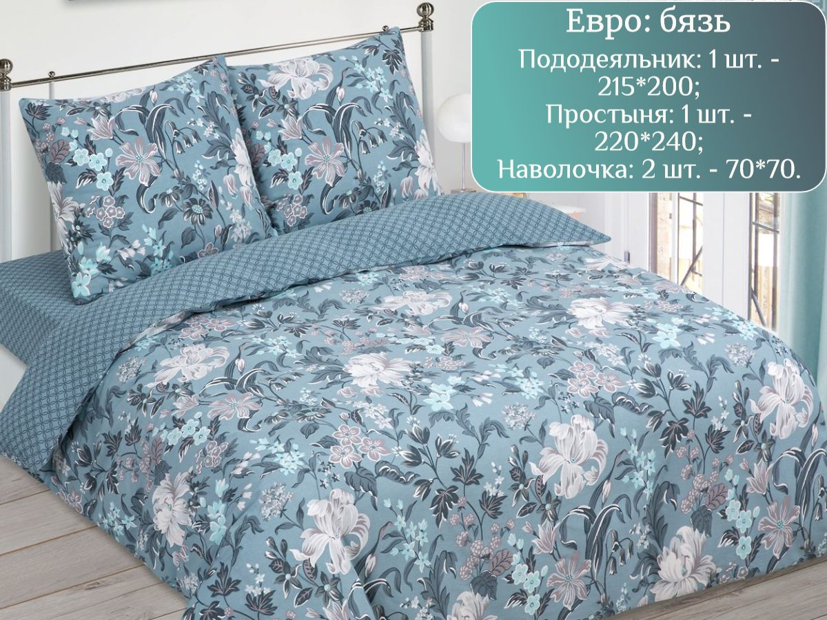 120 / темно-синий / Лоренце / Растения / 1700 / ивановский текстиль / Евро / 200x215 / 1 пододеяльник, 1 простыня, 2 наволочки / 220x240 / Средняя / Унисекс / 4
