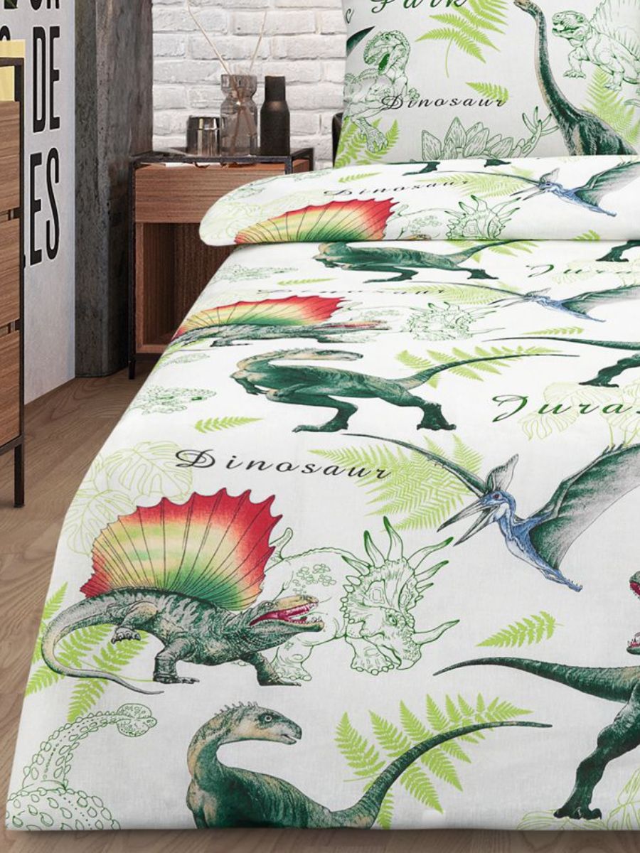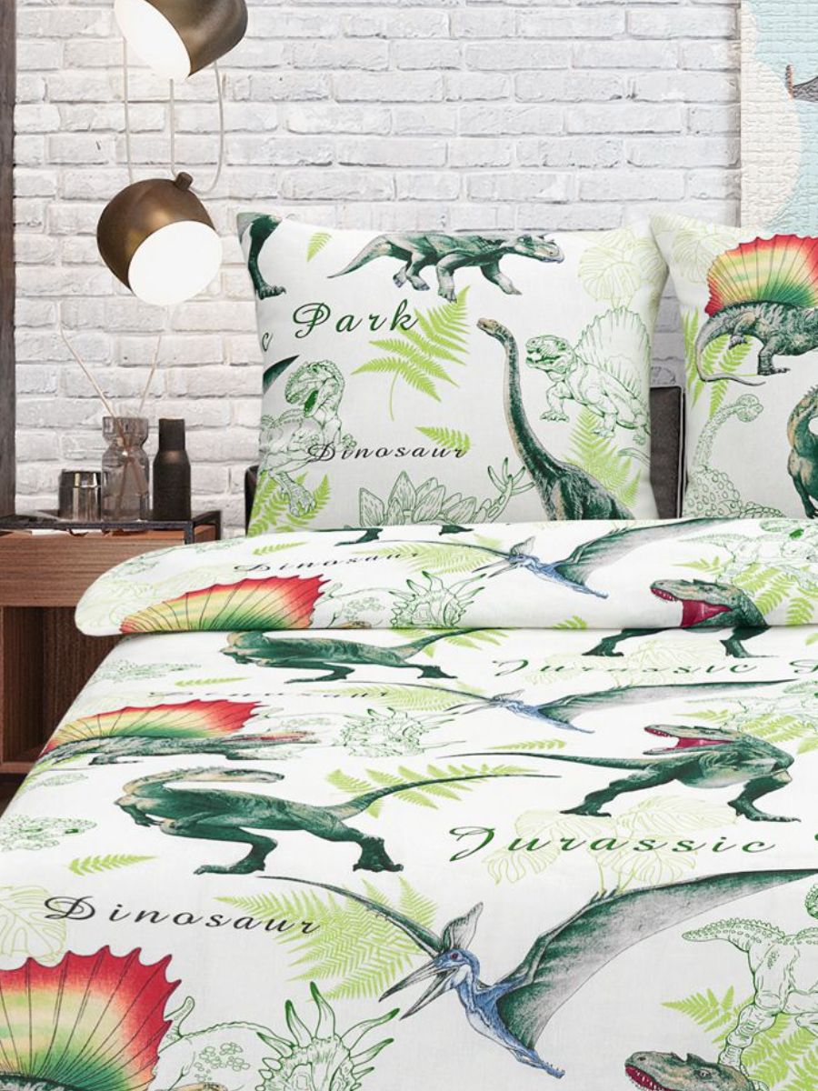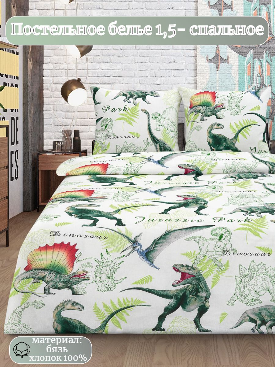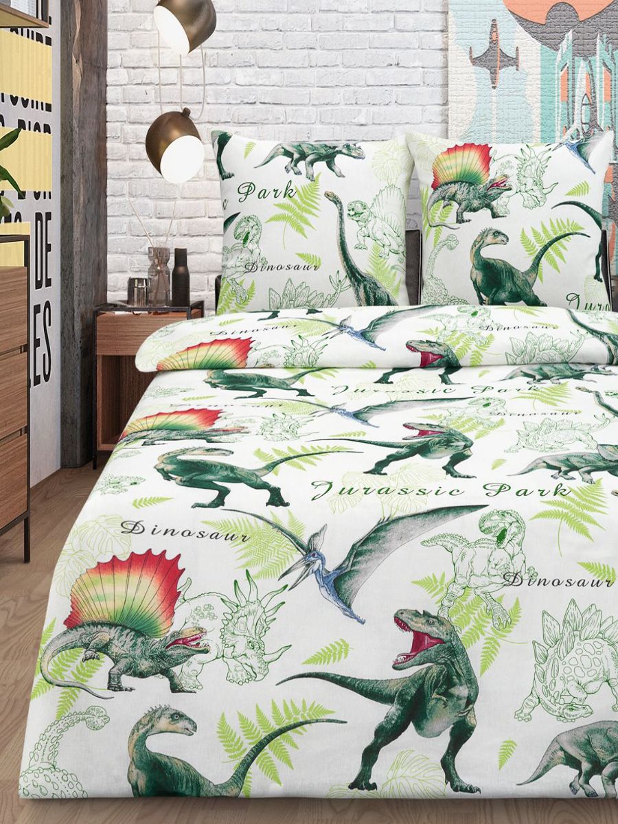 Комплект постельного белья из бязи (состав: хлопок 100%) плотностью 125 гр./кв.м. с принтом динозавров порадует тех, кого вдохновляют доисторические существа. Яркое постельное белье создаст хорошее настроение и подарит приятные сны. Комплект состоит из 3 предметов: пододеяльник 147х215 см., простыня 147х215 см. и 1 наволочка 70х70 см.