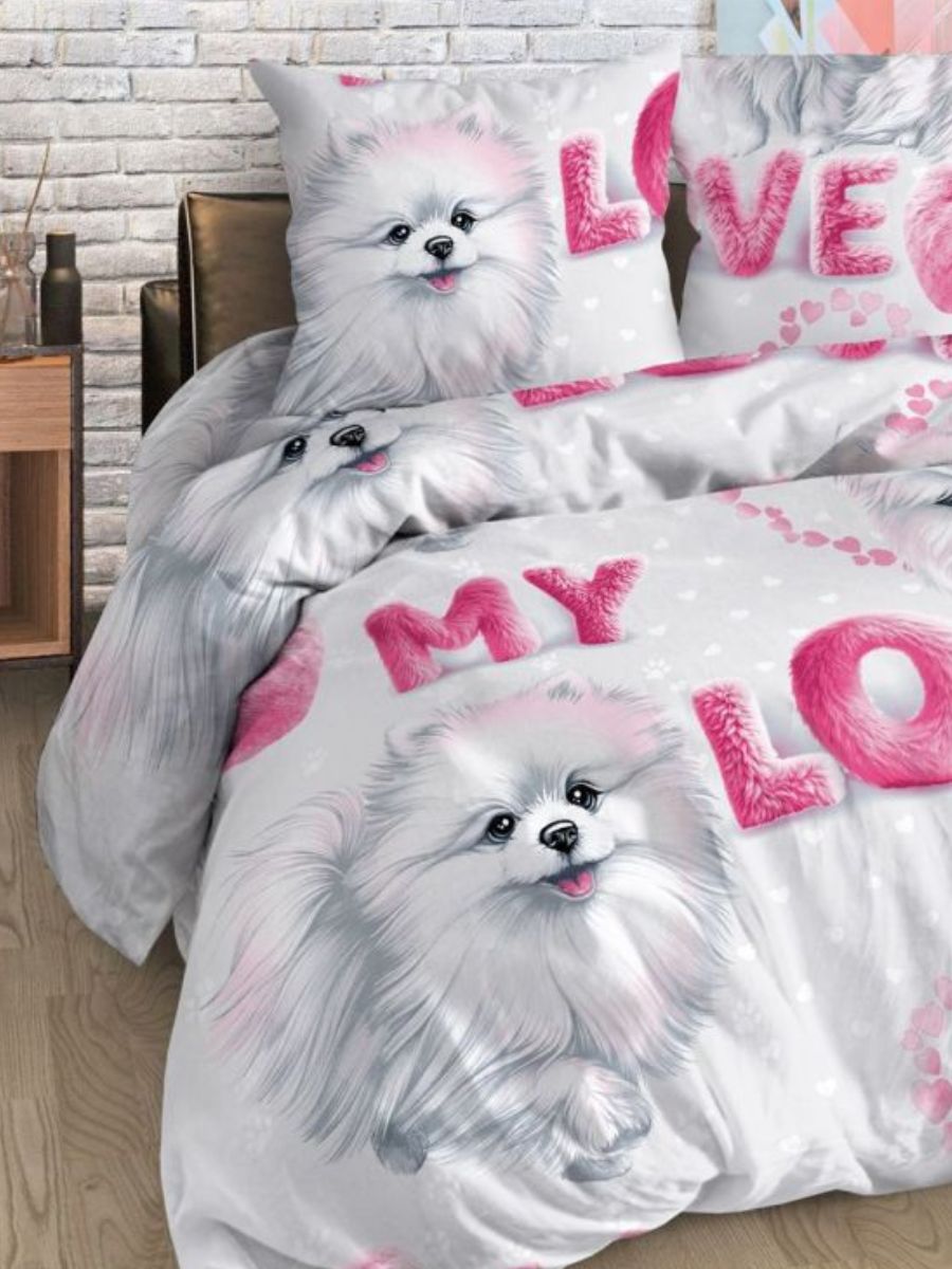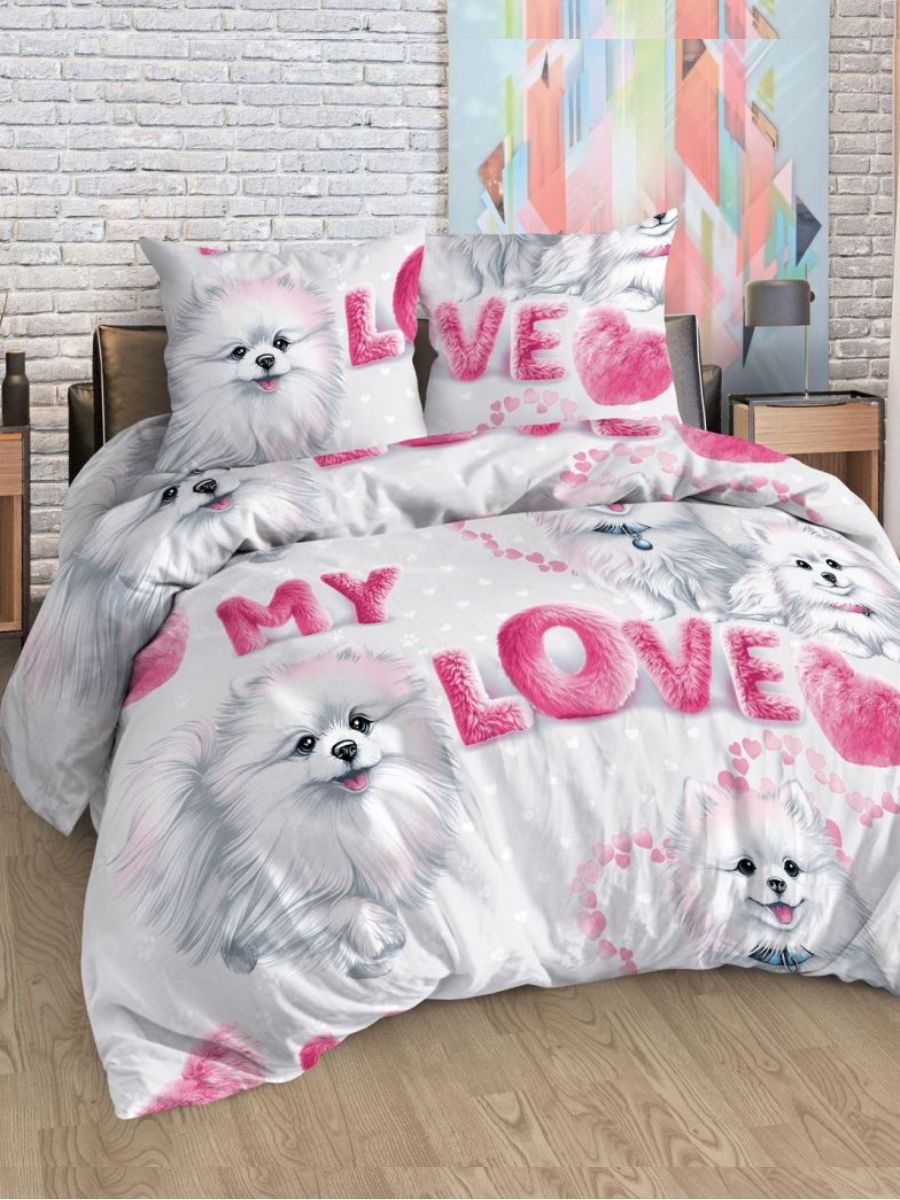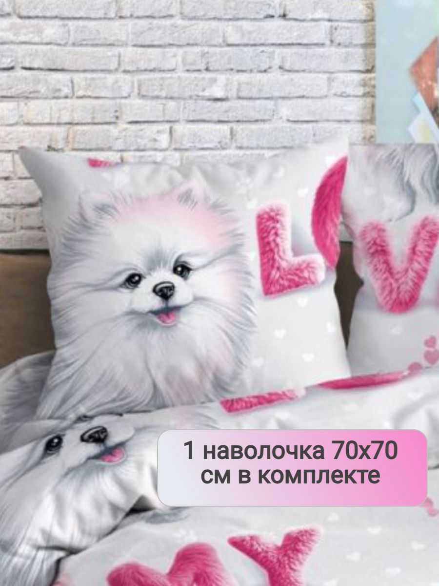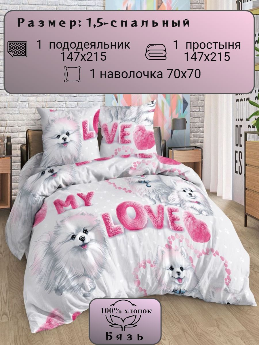 Комплект постельного белья из бязи (состав: хлопок 100%) плотностью 125 гр./кв.м. с принтом милых песиков-шпицев порадует тех, кого вдохновляют пушистые любимцы. Яркое постельное белье создаст хорошее настроение и подарит приятные сны. Комплект состоит из 3 предметов: пододеяльник 147х215 см., простыня 147х215 см. и 1 наволочка 70х70 см.