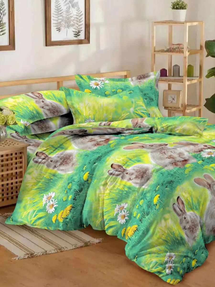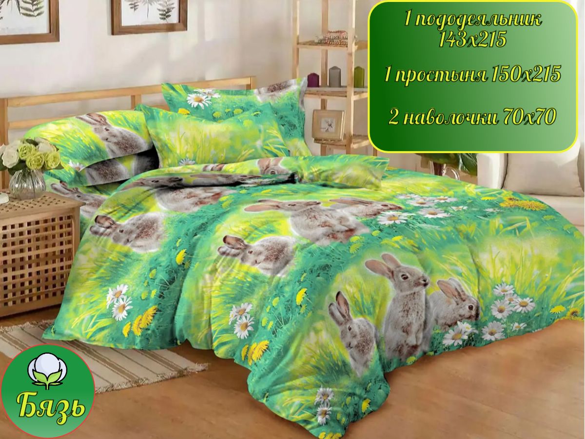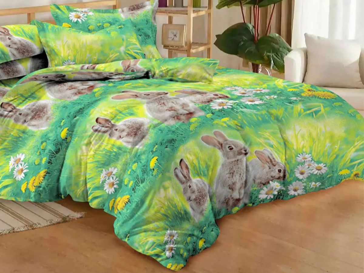 Прекрасное постельное бельё с принтом ярких кроликов подойдет для юных любителей братьев наших меньших. Материал комплекта: бязь плотностью 120 гр/кв.м, состав сырья – 100% хлопок, размер постельного белья – 1,5 спальный. В составе комплекта 1 простыня, 1 пододеяльник, 2 наволочки. Размеры: пододеяльник - 143х215, простыня – 150х215, наволочки – 70х70 - 2 штуки. Постельное бельё из бязи с забавными кроликами станет прекрасным подарком ребенку – подчеркнёт его интересы и индивидуальность.
