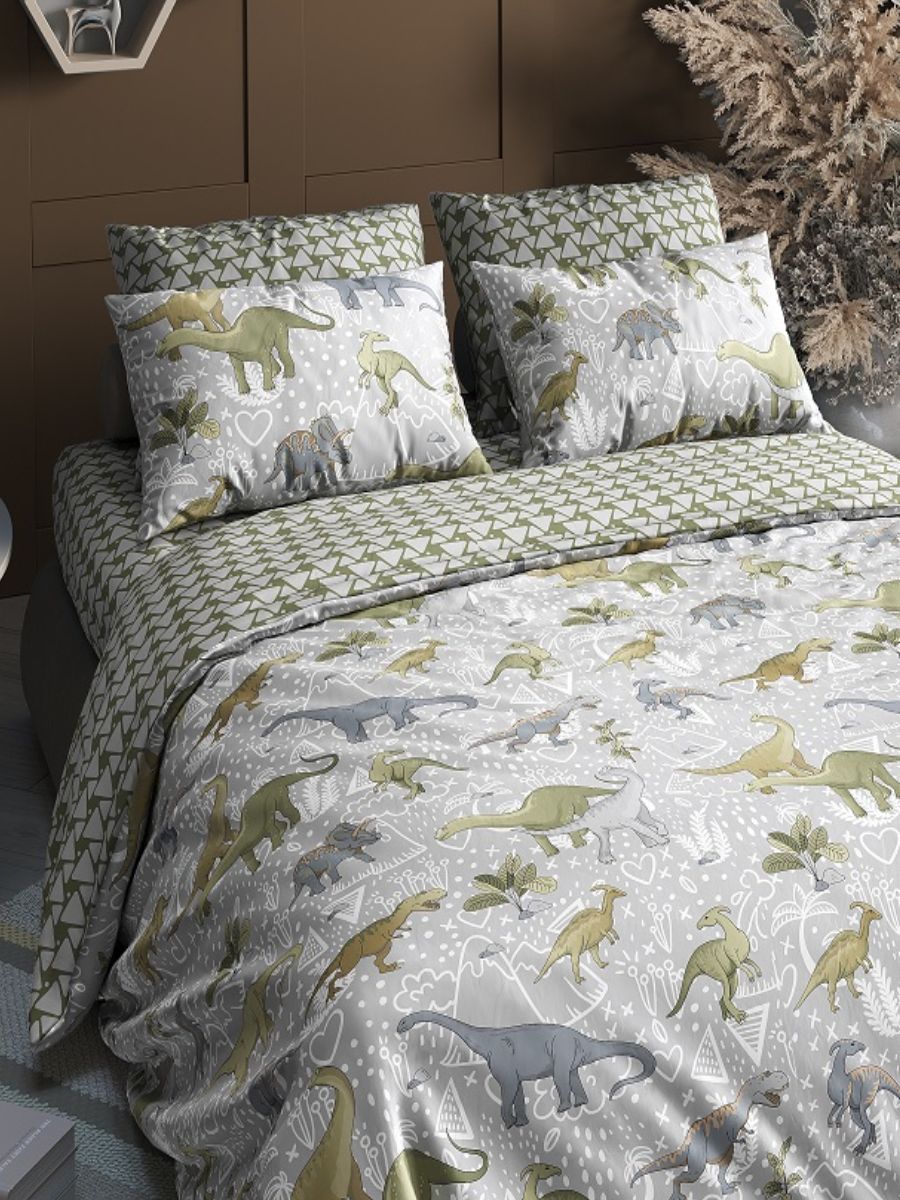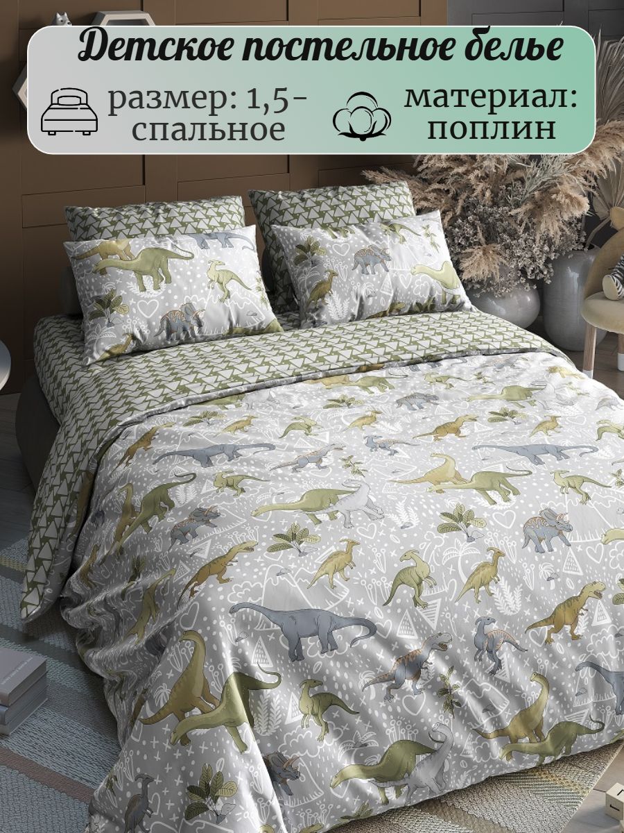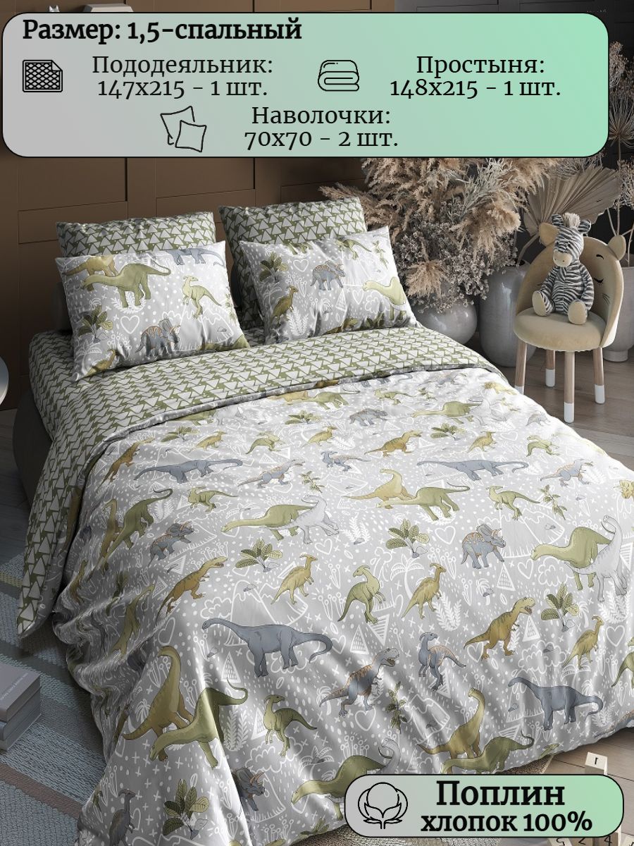 Комплект постельного белья с ярким принтом выполнен из поплина плотностью 115 гр./ кв.м., состав комплекта - 100% хлопок. Практичный 1,5 спальный комплект подарит радость и спокойные сны его обладателю. Состав комплекта: 1 пододеяльник 147х215, 1 простыня 148х215 и 2 наволочки 70х70 см.