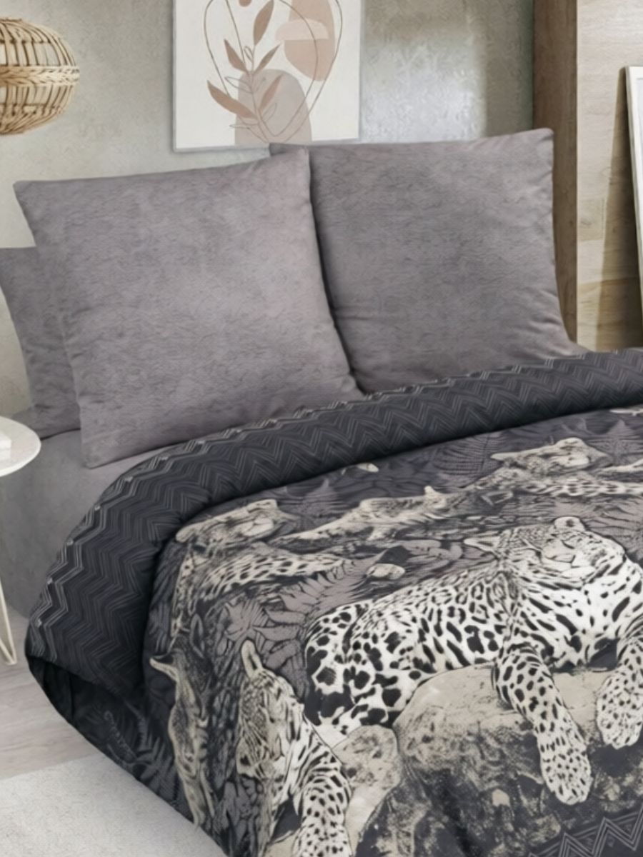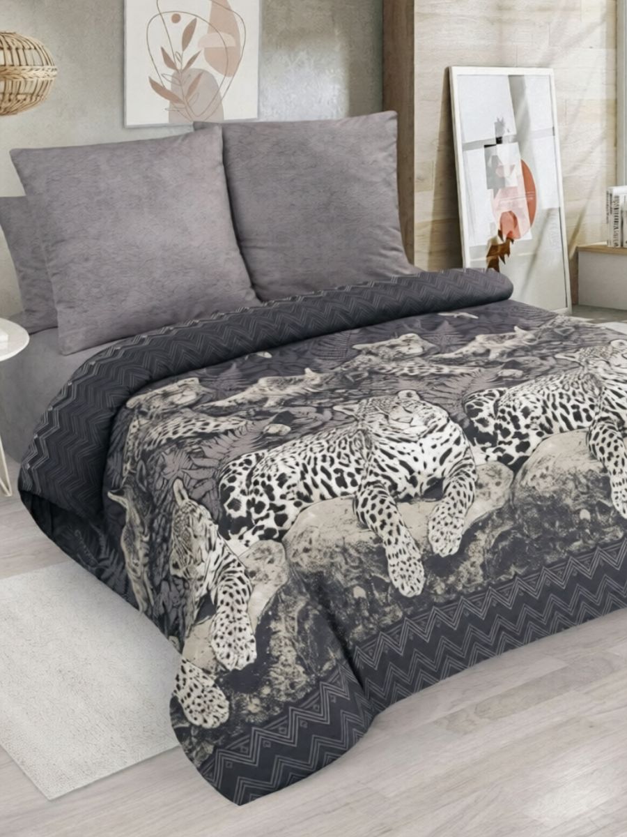 Комплект постельного белья из бязи с принтом серых барсов поднимет настроение в любую погоду. Постельное бельё выполнено в практичных тонах, изготовлено из 100% хлопка (ткань бязь, плотность 125 гр./ кв.м.) Натуральный хлопок не вызывает аллергии, гигроскопичен, хорошо пропускает воздух, позволяя телу дышать. Комплект состоит из пододеяльника размером 175х217 см., простыни размером 175х217 см. и 2 наволочек размером 70х70 см. Комплект постельного белья с практичным принтом станет прекрасным подарком на любой праздник.