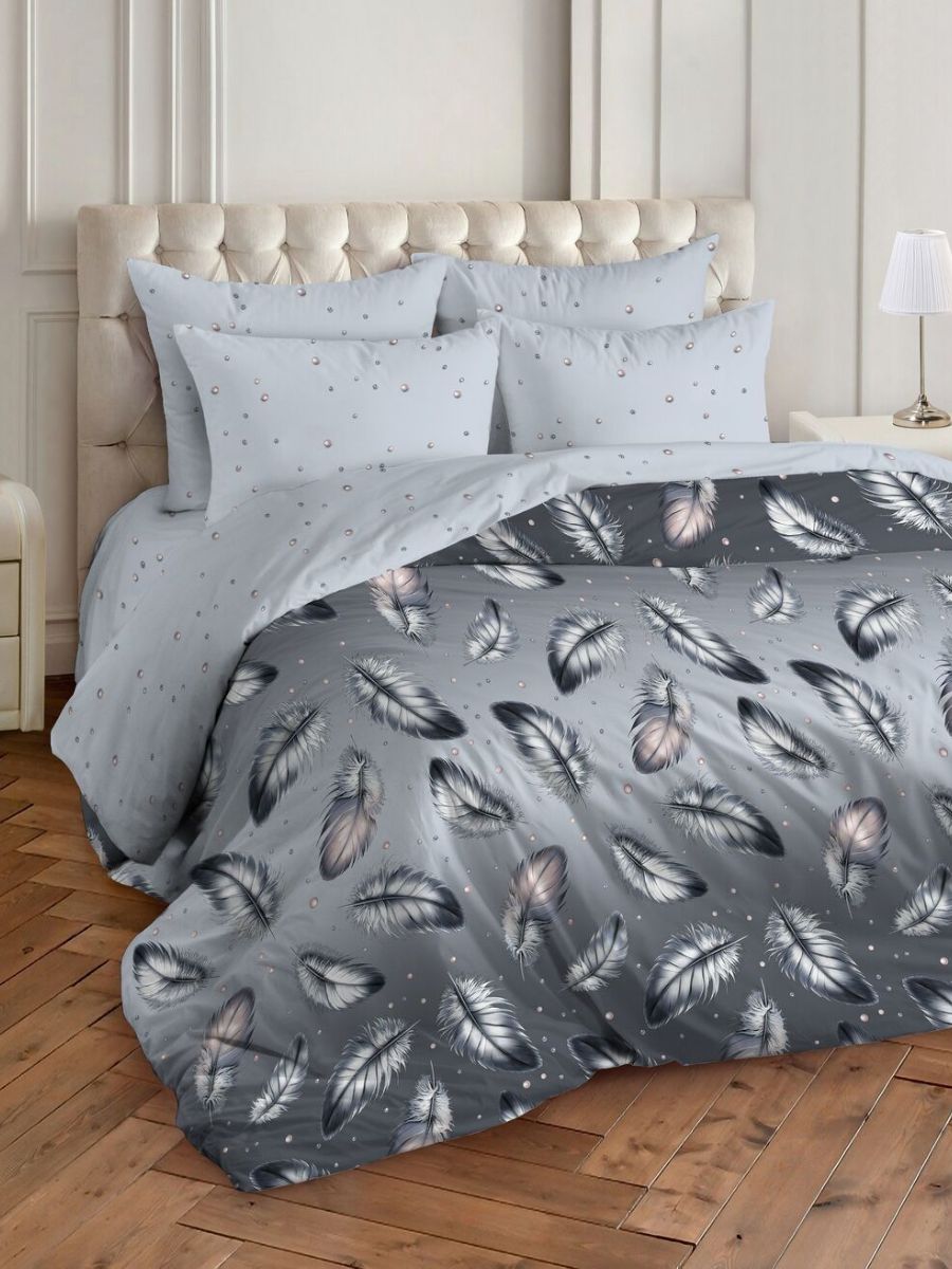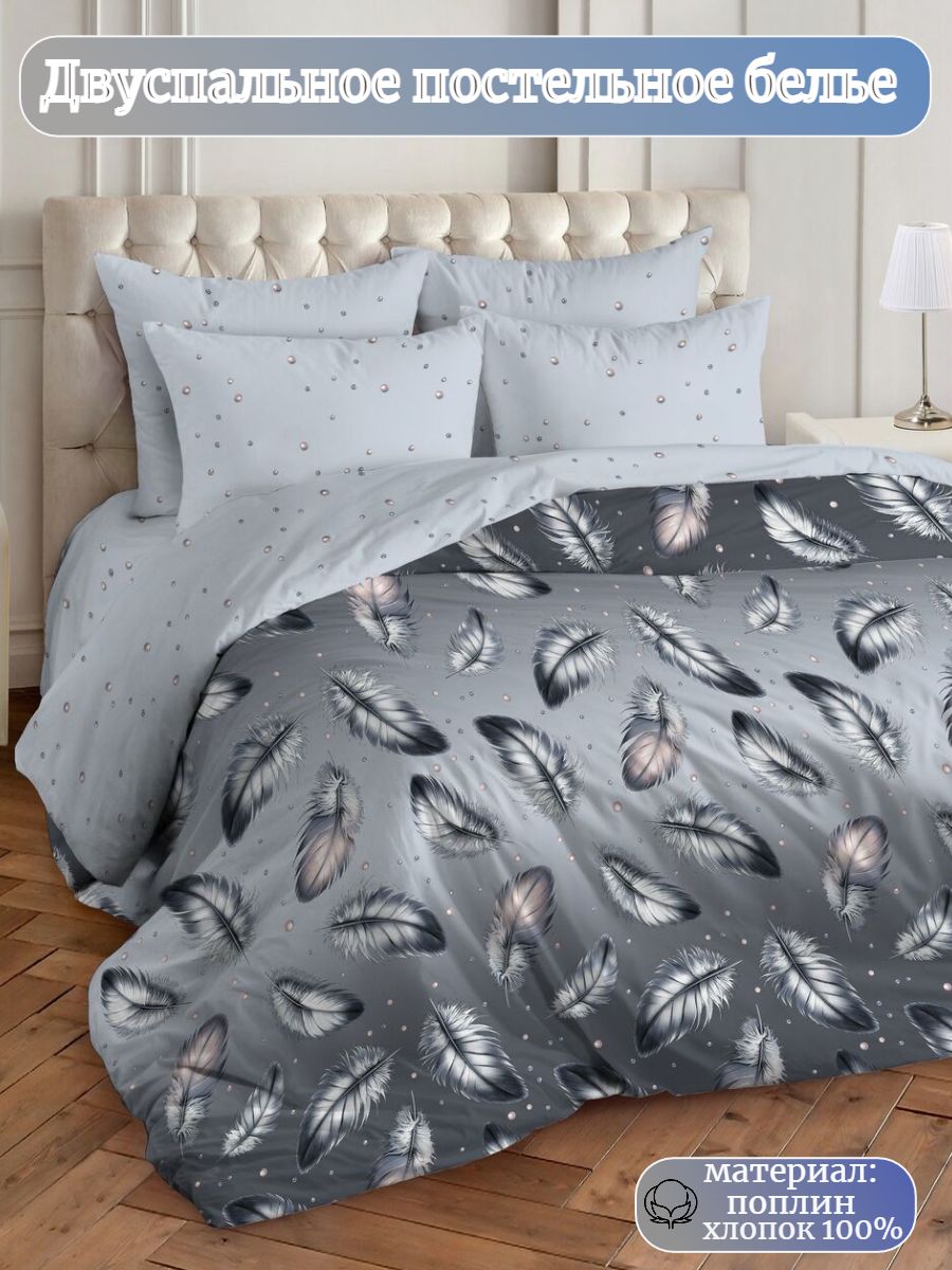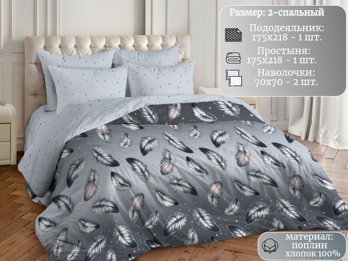 Нежный комплект постельного белья из поплина плотностью 110±5 гр./кв.м. Двуспальное постельное белье с практичным принтом подарит нежность и отличное настроение, принесет уют, тепло и покой в ваш дом. Комплект состоит из пододеяльника 218х175 - 1 шт., простыни 218х180 - 1 шт., и наволочек 70х70 - 2 шт.