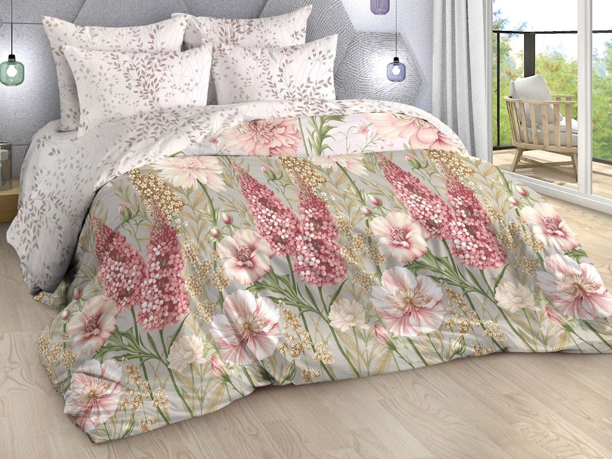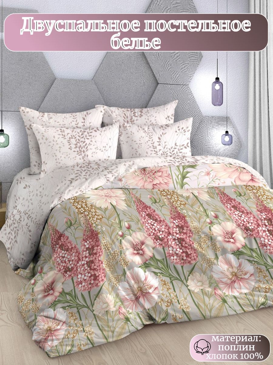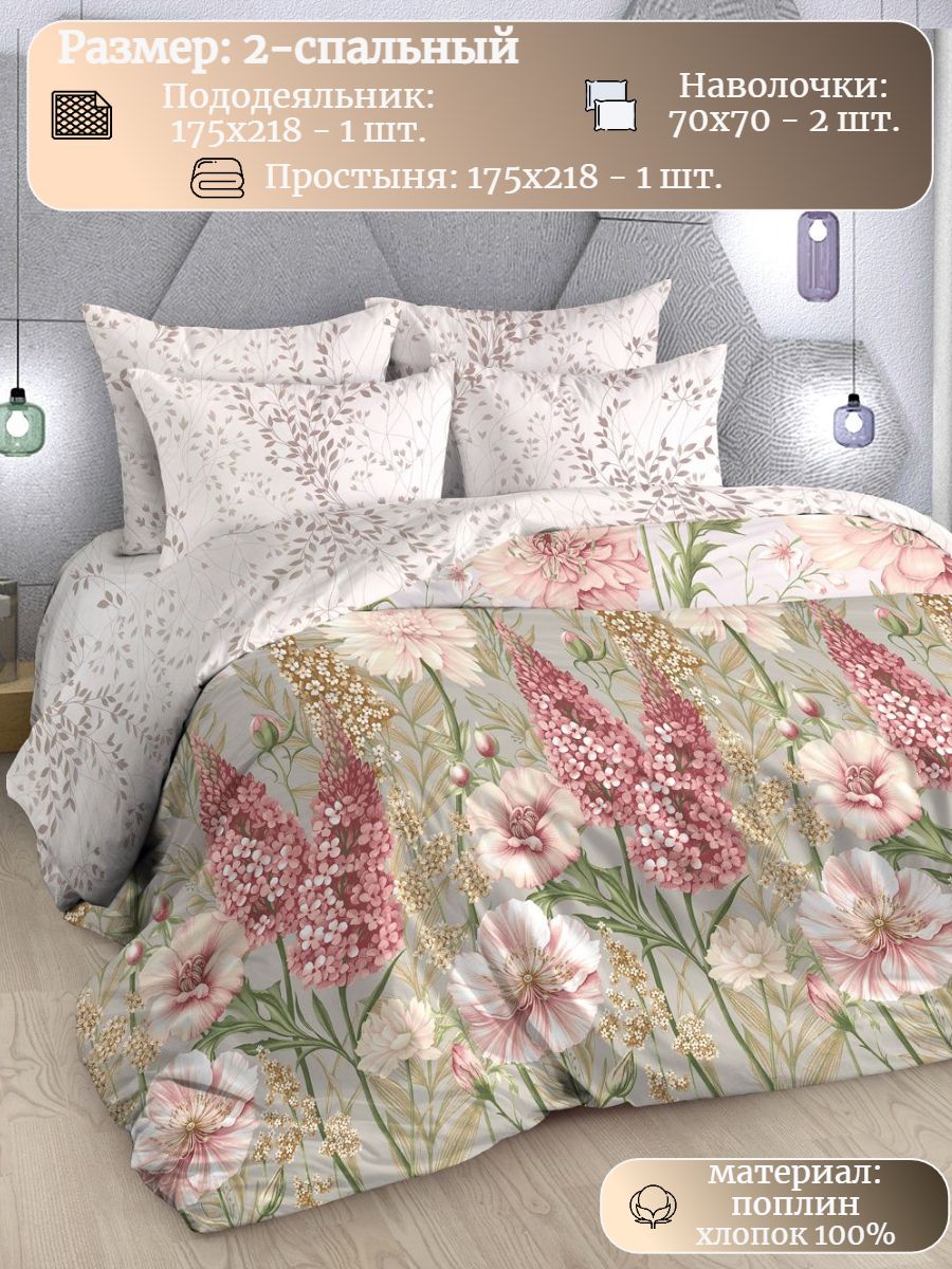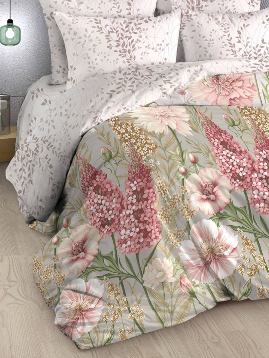 Нежный комплект постельного белья из поплина плотностью 110±5 гр./кв.м. Двуспальное постельное белье с практичным принтом в виде цветочного букета и лиственных веточек подарит нежность и отличное настроение, принесет уют, тепло и покой в ваш дом. Комплект состоит из пододеяльника 215х175 - 1 шт., простыни 175х217 - 1 шт., и наволочек 70х70 - 2 шт.
