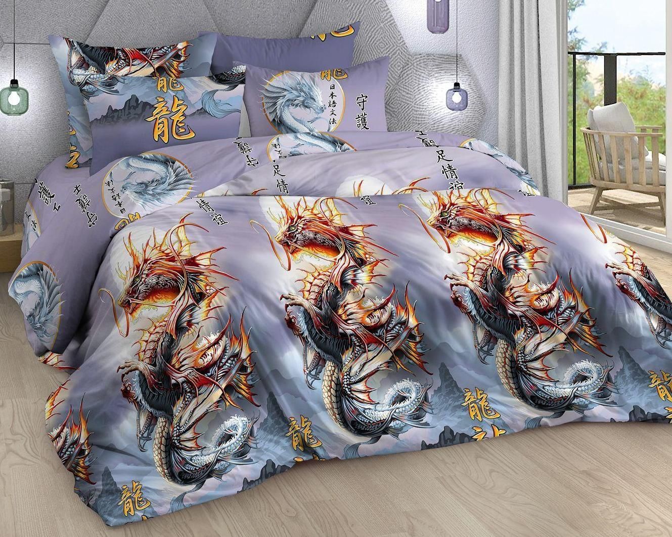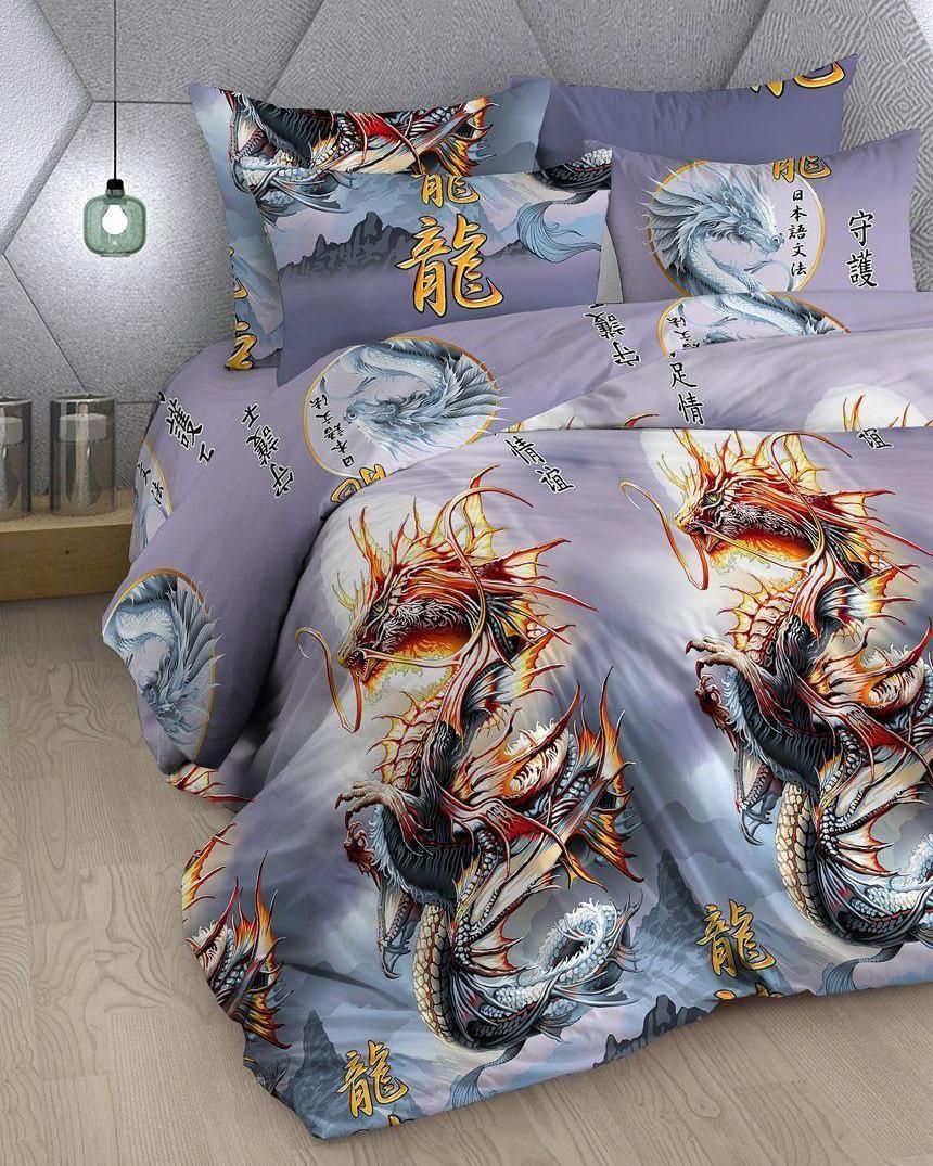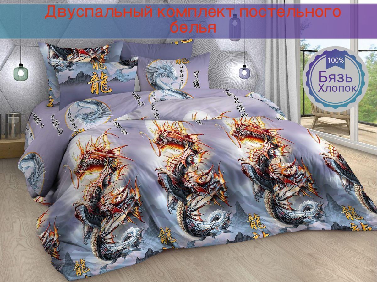 Деревянный Дракон ценит ярких, уверенных в себе, жизнелюбивых личностей, таких, каким является и он сам. Двуспальный комплект постельного белья «Год дракона» с ярким принтом символа года подарит спокойный сон и прекрасный отдых. Комплект выполнен из бязи (состав:100% хлопок) плотностью 125 гр/кв.м. Состав комплекта: пододеяльник, простыня и наволочки сшиты из ткани с основным рисунком. Пододеяльник: 215х175 - 1 шт. Простыня: 175х218 - 1 шт. Наволочки: 70х70 - 2 шт.