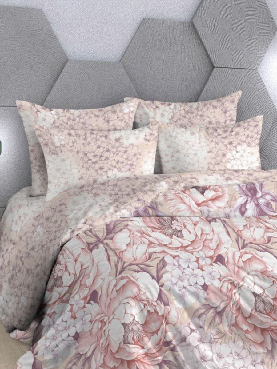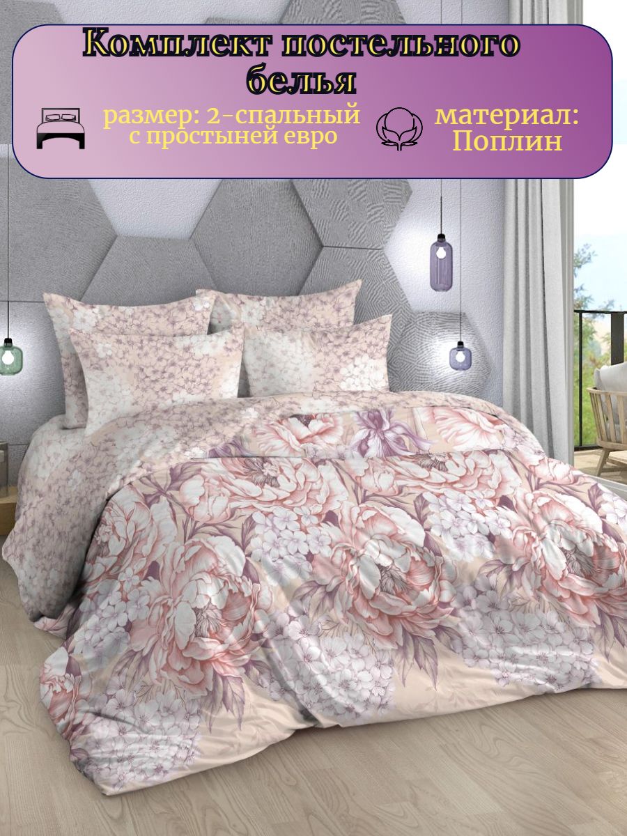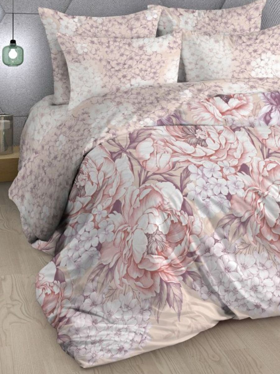 Нежный комплект постельного белья из поплина плотностью 110±5 гр./кв.м. Двуспальное постельное белье с растительным принтом подарит нежность и отличное настроение, принесет уют, тепло и покой в ваш дом. Комплект состоит из пододеяльника 218х175 - 1 шт., простыни 218х240 - 1 шт., и наволочек 70х70 - 2 шт.