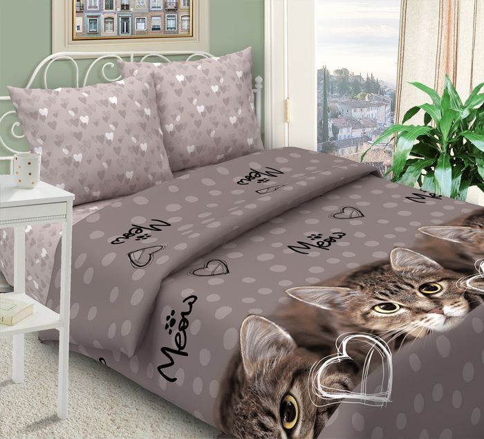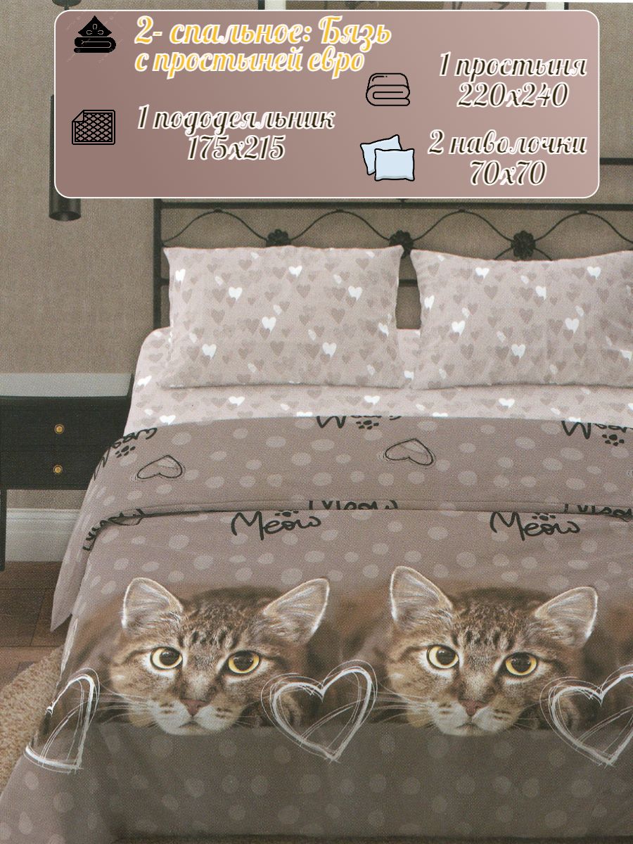 Постельное белье 2 спальное, простыня евро 220х240, бязь, 100% хлопок, наволочки 70х70, постельное белье с котиками