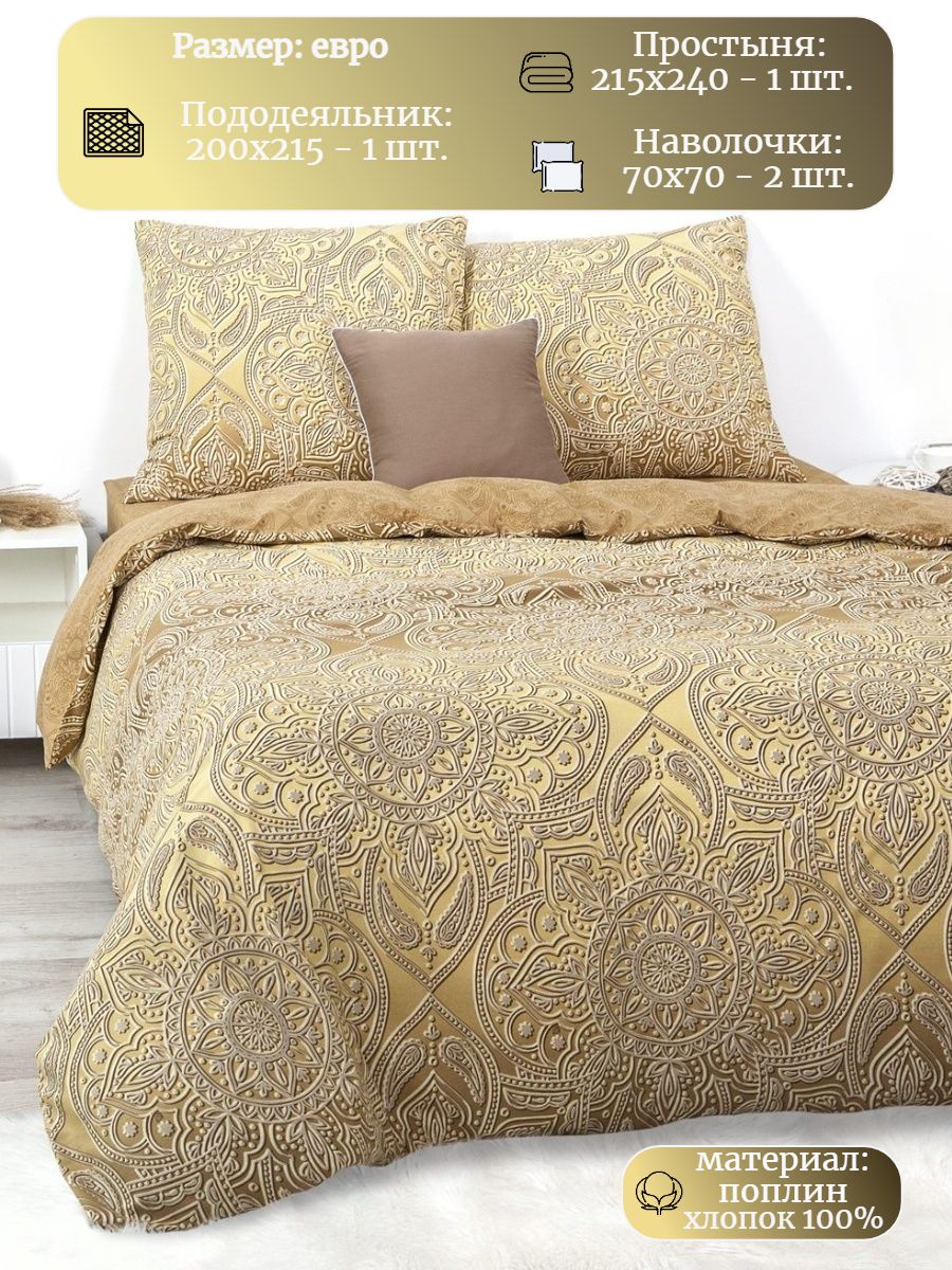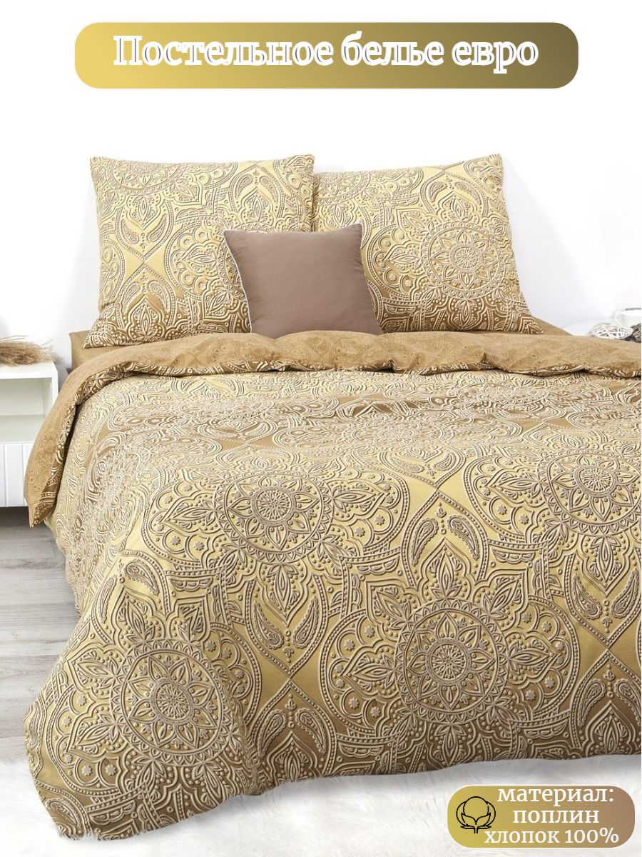 Постельное белье евро, поплин, наволочки 70х70, 100 % хлопок