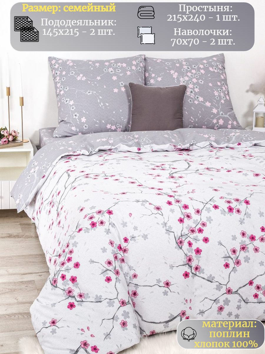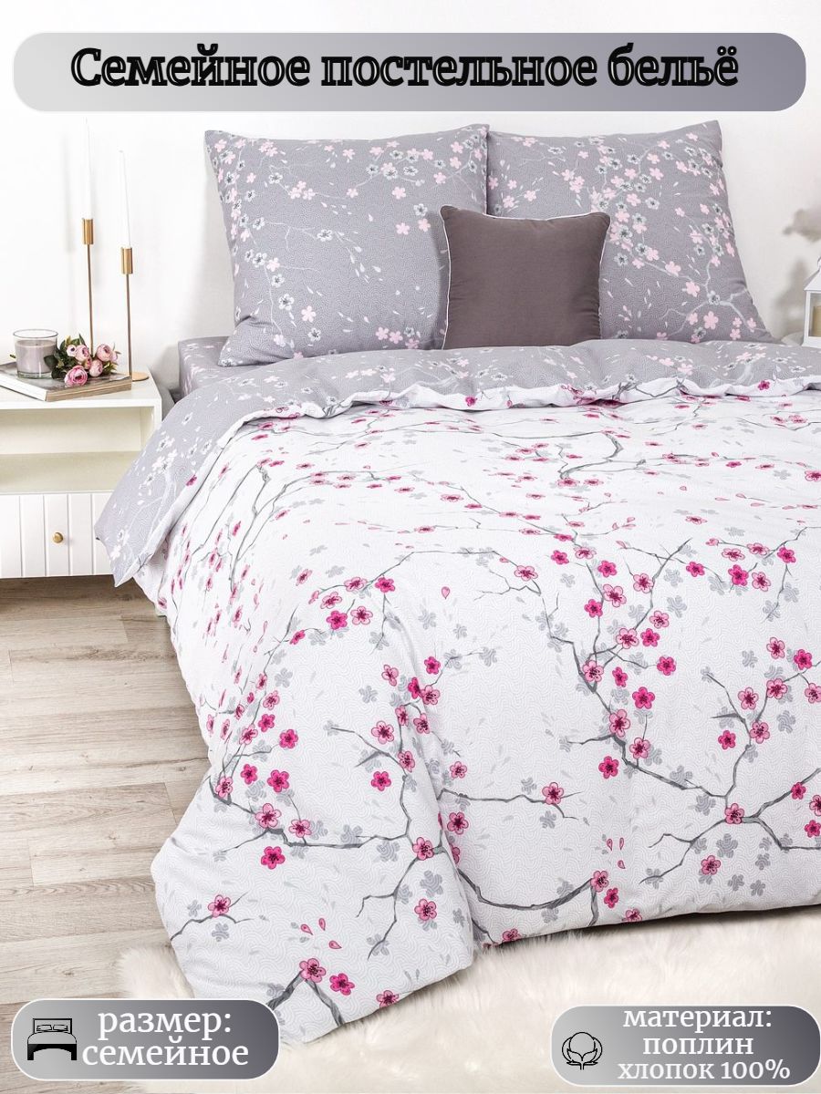 Постельное белье семейное, постельное бельё поплин, наволочки 70х70, 2 пододеяльника